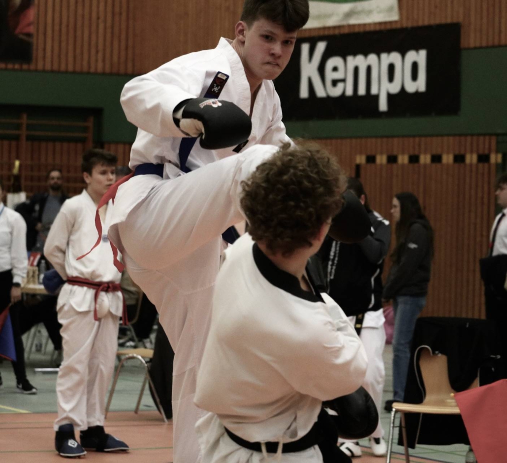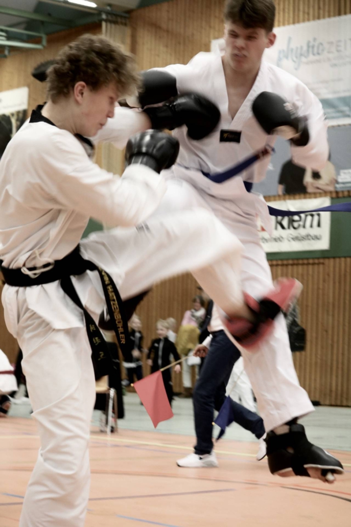 Ein wirklich beeindruckenden Kampf hat unser jüngster Teilnehmer und Blaugurt, Conn gezeigt. Er ließ sich von dem weitaus erfahreneren Schwarzgurt ins keinster Weise beeindrucken und nach langen Wettkampfminuten mit einerm klaren Unentschieden, gab es den Siegerpunkt für seinen Gegner nur mit äußerst knappem Vorsprung.