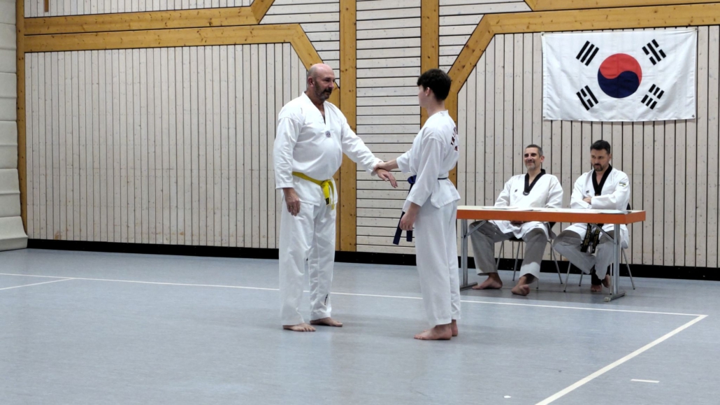 Matthias hatte an der ursprünglich gehaltenen Prüfung am Wochenende unseres Trainingscamps nicht teilnehmen können und wurde deshalb einzeln nach geprüft. Er hat in seiner Einzelprüfung klar gezeigt, dass Taekwondo in jedem Alter in kurzer Zeit zu sichtbaren Erfolgen führt. Er absolvierte eine prima Prüfung und zeigte seine Leistungen im Alleingang – Toll!
